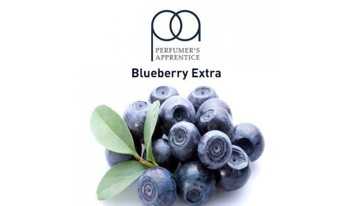 Популярный вкус от компании TPA — натуральная черника Blueberry Extra. В состав этого ароматизатора входят не только натуральные, но и искусственные ароматические эссенции, а также полипропиленгликоль как основа. Аромка вполне оправдывает свое определение (Extra), и предлагается в достаточно концентрированном виде. Замешивать рекомендуется в соотношении 4% в миксах и 8% в соло.
